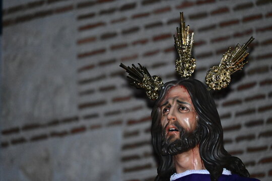 Detail of the bare foot of a nazarene or penitent doing his penance station in the Holy Week procession