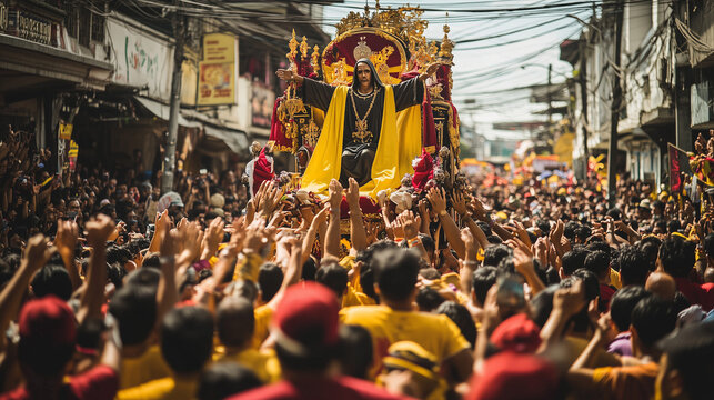 Black Nazarene Procession, thousands of people wearing red and yellow shirts gather in the streets of Manila, Ai generated images