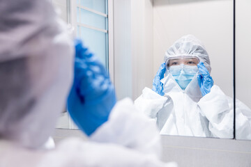 Women doctor wearing protective suit to fight coronavirus pandemic covid-19
