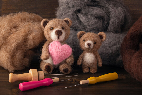 Crafting Supplies Needle felting kit Tools and supplies for sculpting wool fibers into 3D shapes Isolated solo on plain background