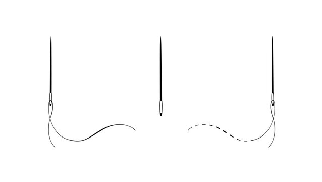 Black silhouette of a sewing needle with thread on white background for sewing and crafting concept