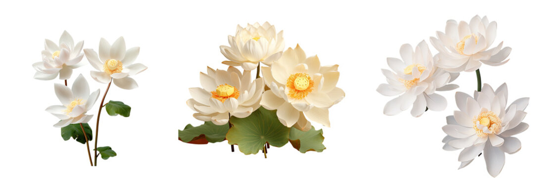 Collection of lotus flower, seed and leaf, Nelumbo nucifera, for floral decoration and peaceful design