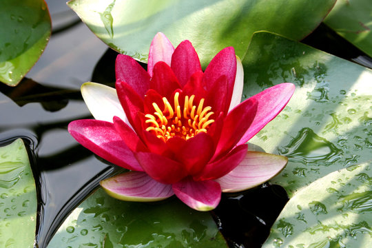Waterlily blossom in a serene pond setting , water lily, nenuphar, water,nature, flower, aquatic, plant, tranquil, peaceful