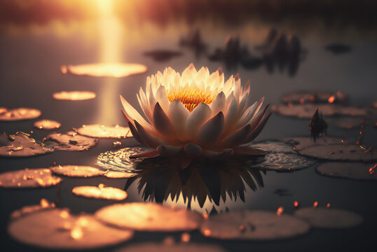 A waterlily blossom in pond nenuphar and water 3D illustration