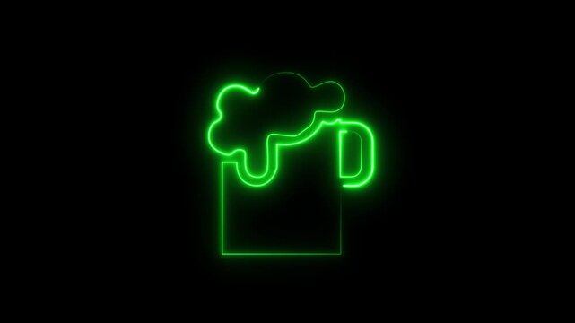 2d Animation motion graphics showing neon sign light signage lighting of beer mug toasting on black screen in HD high definition done retro style.