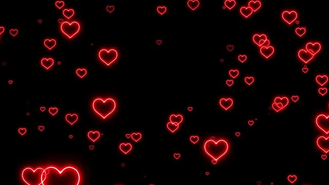 Hearts in Neon Elegance. Purple neon love hearts bliss. Valentine's day glowing banner with shiny hearts as a template for greeting card, invitation, ads. Love day festive background