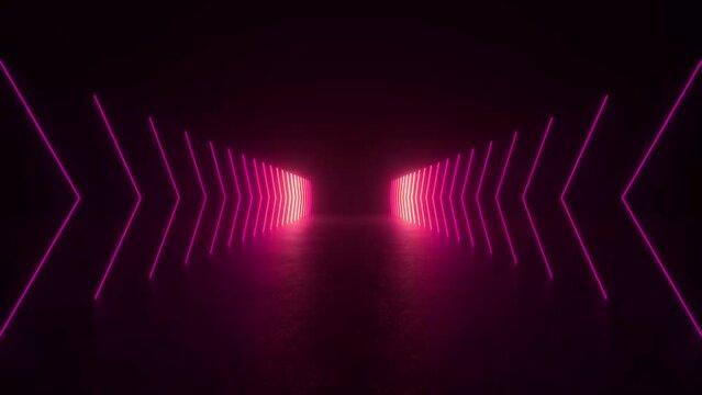 Experience a tunnel of neon lights illuminating a dark room with futuristic sci-fi vibes and glowing shapes in a mesmerizing loop.