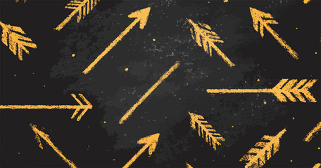 Sfondo vettoriale nero con frecce dorate disegnate a mano in stile rustico e pattern ripetuto.