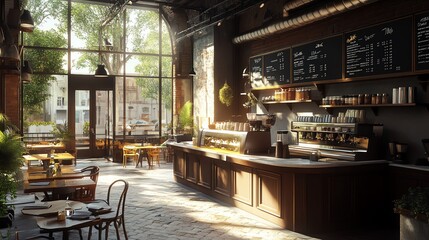 Render a cozy, intimate cafe nestled in a bustling city, highlighting the contrast between urban chaos and the serene atmosphere inside