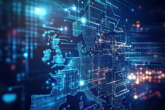 A detailed map of the USA with a digital network overlay, displaying glowing nodes and lines connecting various locations across the country, signifying connectivity and technology.