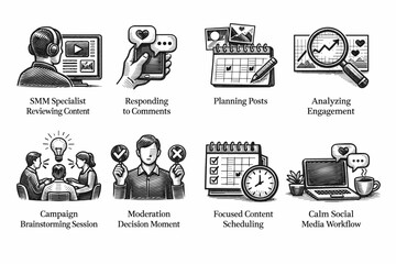 Social media management concept with various tasks and tools