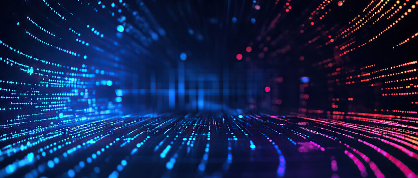 Digital background perfect for tech processes, neural networks, artificial intelligence, data transfer and encryption, digital archives, sound and graphic presentations, science, education, etc.