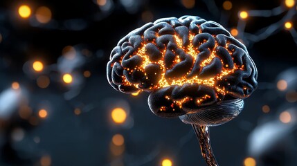 Stylized glowing light network forming a human head. Visualizes disease, neurological disorders, or conceptual data processing. Perfect to illustrate health and technological advancement themes.