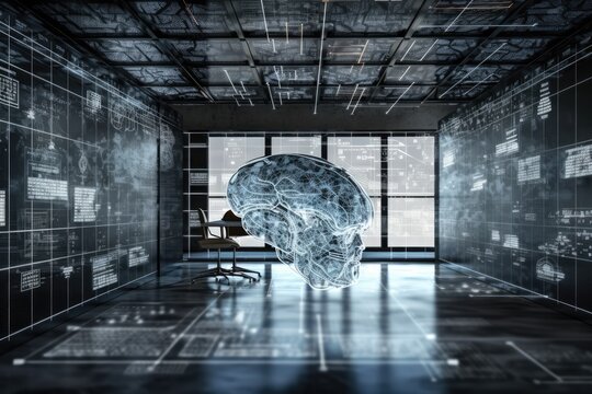 Brainstorming Session: Digital Brain in a Conference Room, Illustration