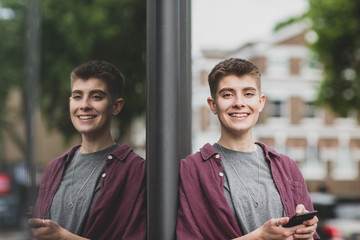 Celebrating pride month with enthusiastic youth and rainbow flag