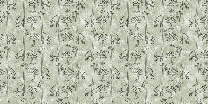 Cute safari wild giraffe animal border for babies room decor. Seamless furry green textured gender neutral print design.