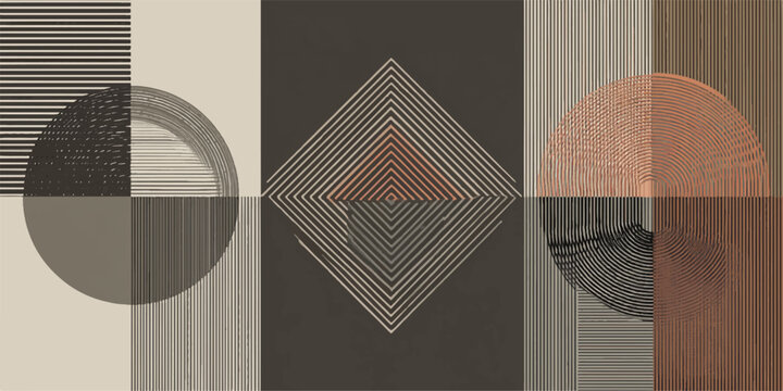 Abstract geometric composition with circles and diamond shapes in muted earthy tones