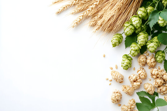 Raw Barley and Hops: Essential Ingredients for Craft Beer Brewing white background