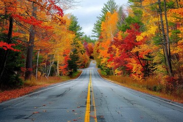 Beautiful little red covered bridge in Fanconia New Hampshire during Fall season
