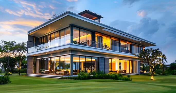 Golf ball sits on a tee amidst dewy grass, facing the rising sun on a golf course, symbolizing the start of a new day of golf and recreation