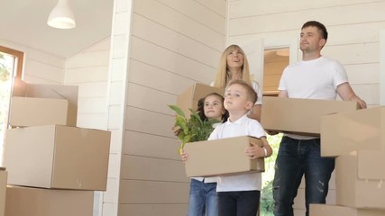Happy family on Moving house, relocation. New house, belongings and furniture. move in the apartment or condominium. New landlord, Becoming homeowner, Generate by AI