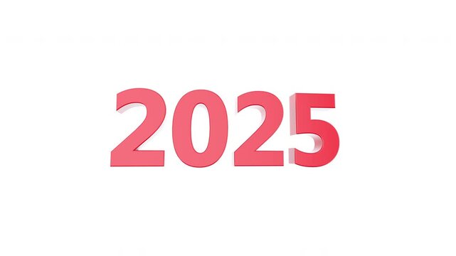 2025 Happy New Year 3d animation in Red and white Color with alpha matt to remove or replace background. 2025 3d Animation.