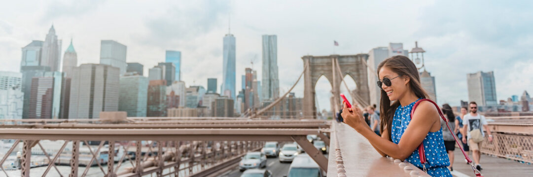 Happy and beautiful female woman smiling. Pretty young female walking and having fun in metro New York city