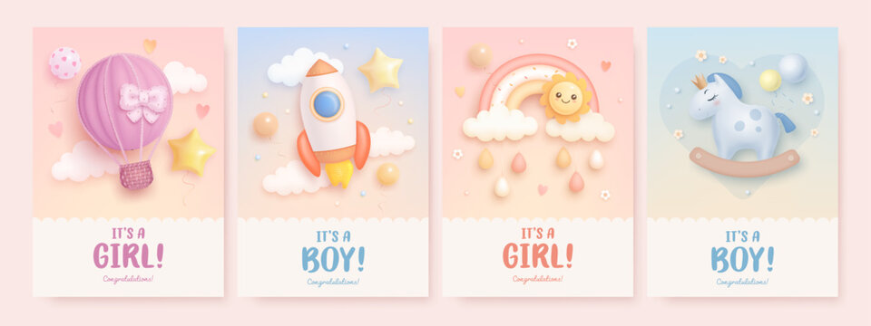 Baby shower , card, banner . It's a boy