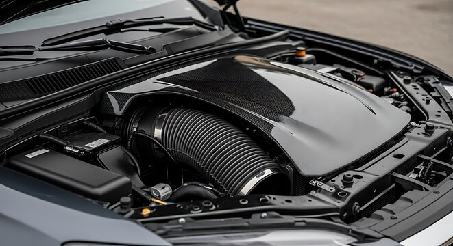 Air intake hose replacement, new spare parts. Air intake hose repair, fixing problems. New rubber tube. Car engine repair..