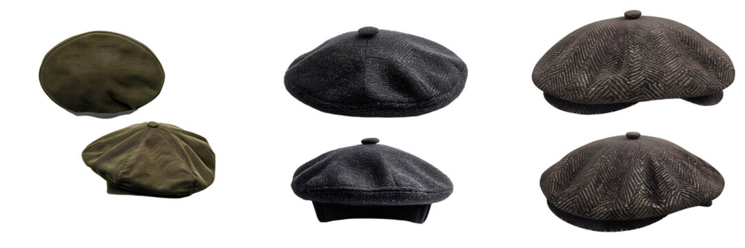 Herringbone newsboy cap in classic color, isolated on a white background, png