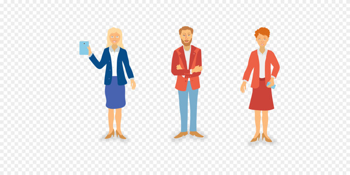 Set of different people using gadgets. Business men and women holding smartphones and tablet, texting, talking, watching news. Group of male, female cartoon characters Vector realistic illustrations.