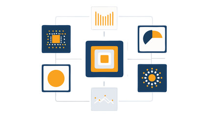 A white framed picture sits on a shelf next to a vase and a bowl AI-Created Content