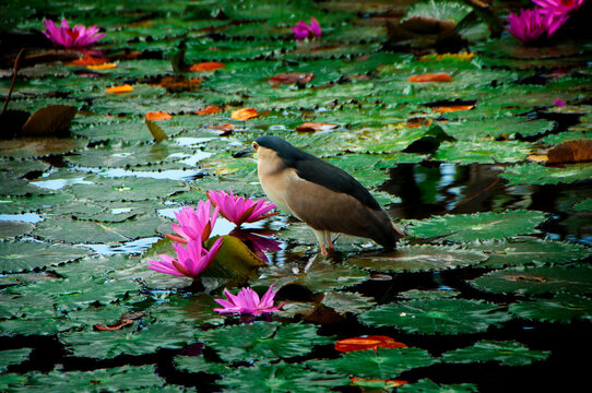 Fishing, master, night heron, pond. bird