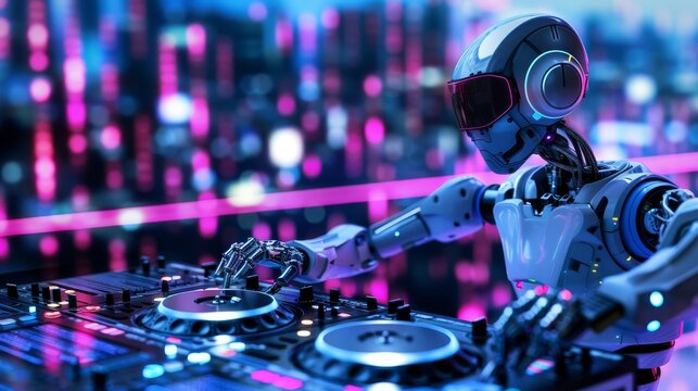 Female dj mixing music in vibrant setting