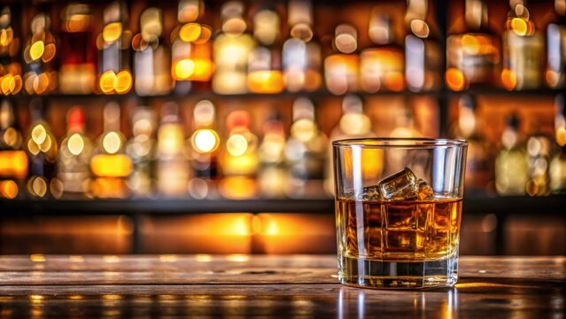 Glass of whiskey on bar table behind the bar, whiskey, alcohol, bar, table, drink, pub, nightlife, beverage