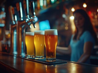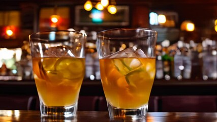 Alcohol Whiskey Drinks on Wooden Counter in Bar