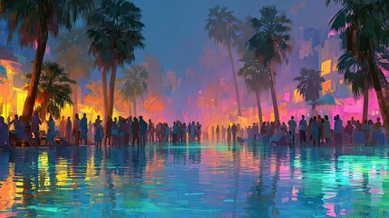 Neon-themed new year's eve party invitation with vibrant diamonds