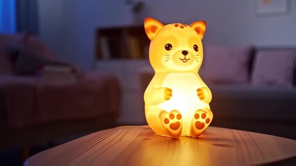 Enchanting kitten nightlight casting a soft glow in a cozy bedroom setting