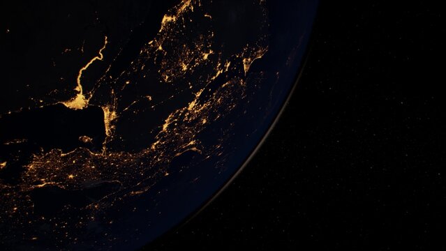 This stunning view showcases the illuminated cities of Asia twinkling against the dark backdrop of night. The vibrant lights reveal human activity and geographic features from a unique perspective.
