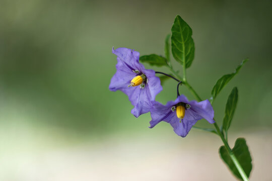 Leaf and flowers of the watermelon nightshade (Solanum citrullifolium) in summer