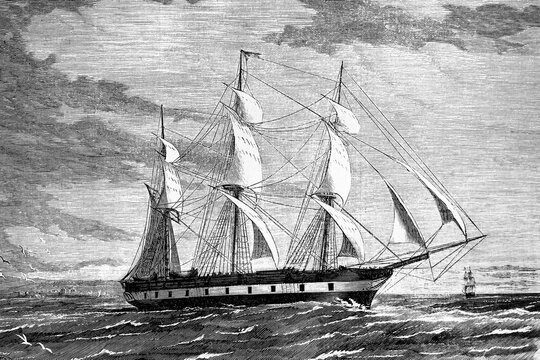 Spanish navy corvette La Ferrolana. War of Cuba. Antique illustration. 1865.