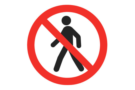 No entry for pedestrians sign. Stop symbol. Prohibitory traffic warning sign. No walking, people forbidden icon. Man silhouette in red circle. Restricted area concept vector.