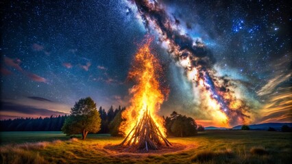 Celestial star shining brightly amidst nocturnal cloudscape with a starlit sky. Easter, Pascha, Paskha, Ostern, Pascua, Paques - Orthodox and Catholic Holiday celebration