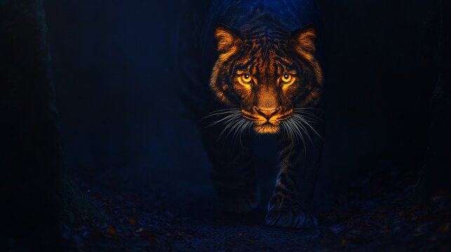 Majestic nocturnal predator a mesmerizing portrayal of a feline form lurking beneath the veil of darkness a celebration of wildlife mystery