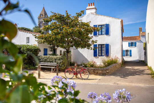 Jolie rue typique de l'île de Noirmoutier en Vendée
