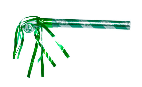 Party red foil whistle or noise maker horn rolled isolated on the white