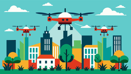 As cities continue to expand upwards air taxis equipped with farming drones become the new agricultural norm taking advantage of every available space to produce food for the. Vector illustration