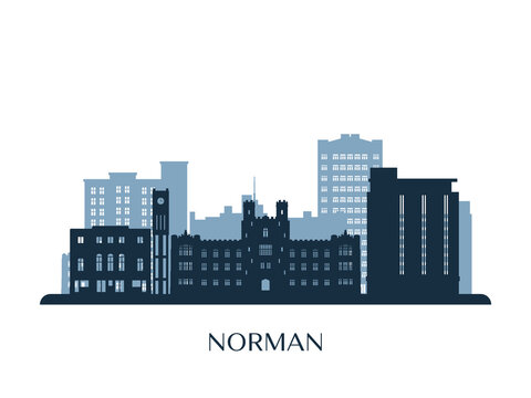 Norman Oklahoma Skyline BW, cityscape landscape watercolor painting print poster abstract splash illustration urban art modern downtown landmarks skyscrapers