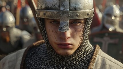 A young Norman knight recently knighted and eager to prove himself armored from head to toe and ready for battle.