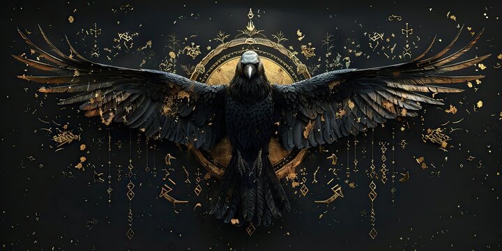 Norse God Odins Ravens in Flight Their shapes blending into the sky